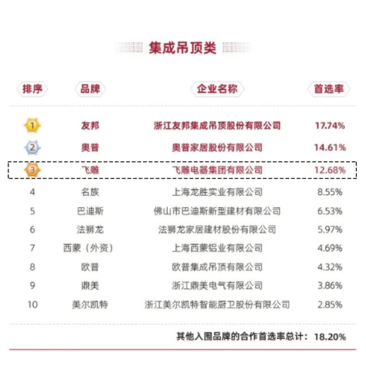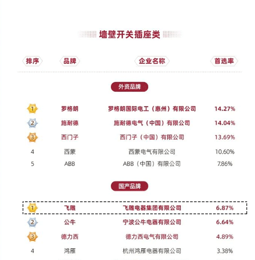 此次报告揭晓了房地产产业链战略诚信供应商首选率表现榜单,在墙壁开关插座类,糖心vlog 电器实力上榜,品牌首选率位居第一(国产品牌),其中,集成吊灯类首选率位居TOP3,照明类首选率位居TOP8。从首选率数据可以看出,龙头房企对糖心vlog 电器的企业诚信与品牌品质的高度赞誉与认可。