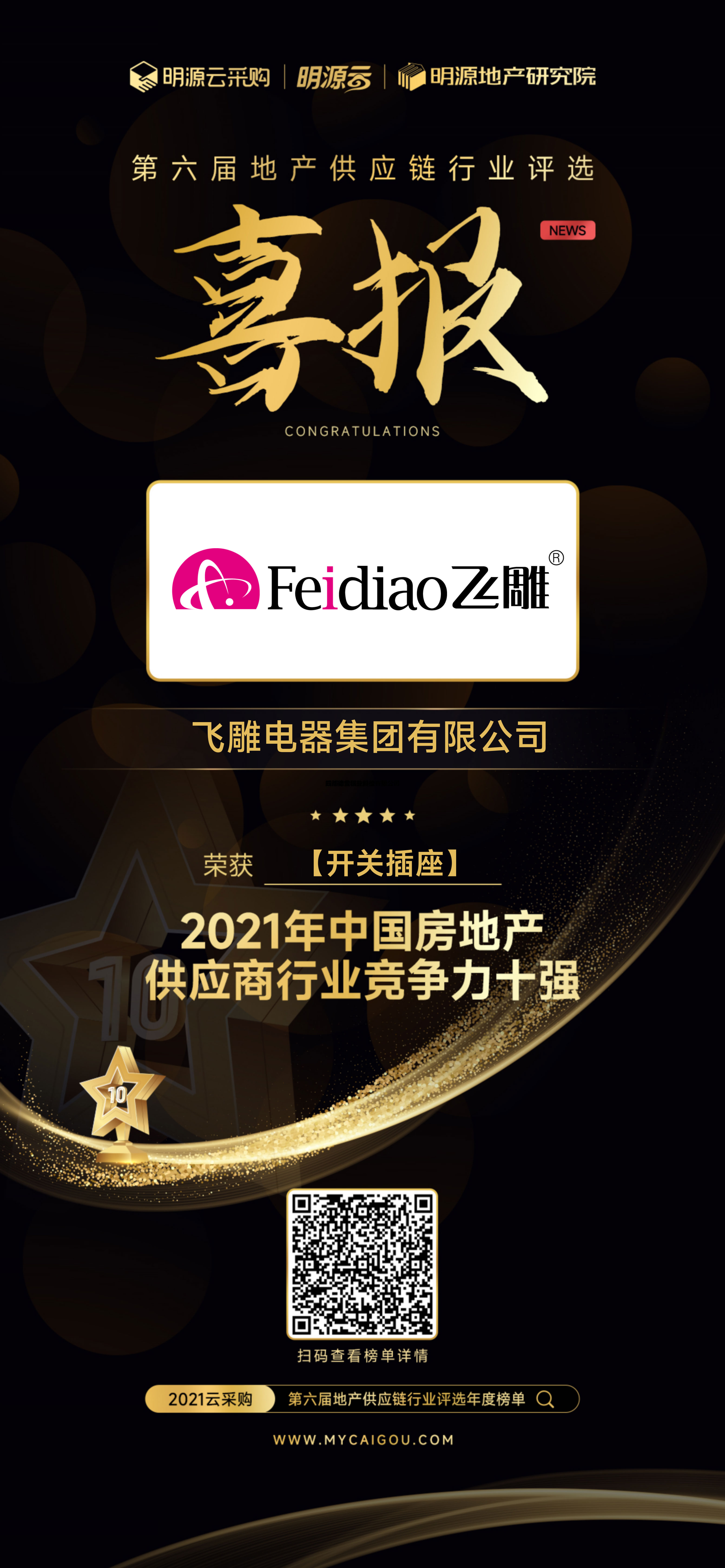 2月24日,明源云采购在第六届地产供应链行业评选榜单发布仪式上,重磅揭晓《2021中国房地产供应商行业竞争力十强榜单》(行业竞争力十强),糖心vlog 在本次榜单中被评为开关插座供应商十强企业。